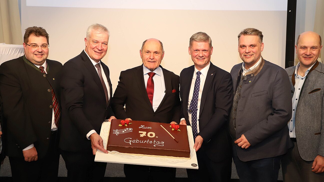 Ein weiterer Höhepunkt des Abends war die Gratulation an den langjährigen Bezirksparteiobmann und Nationalratspräsident a. D. Wolfgang Sobotka, dem anlässlich seines 70. Geburtstags herzlich gratuliert wurde.