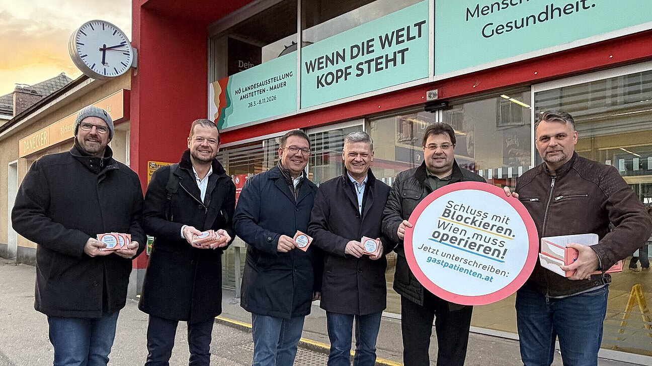 Seit Mitte Februar läuft die Kampagne „Schluss mit Blockieren. Wien muss operieren!“, welche die Volkspartei Niederösterreich im Zuge der Debatte um die Behandlung niederösterreichischer Patientinnen und Patienten in Wiener Spitälern gestartet hat. Heute, am 23. März, erreicht diese Kampagne einen neuen Höhepunkt: Mit einer landesweiten Verteilaktion wird der Schulterschluss zwischen Niederösterreicherinnen und Niederösterreichern weiter verstärkt – auch im Bezirk Amstetten beteiligten sich zahlreiche Funktionärinnen und Funktionäre.
